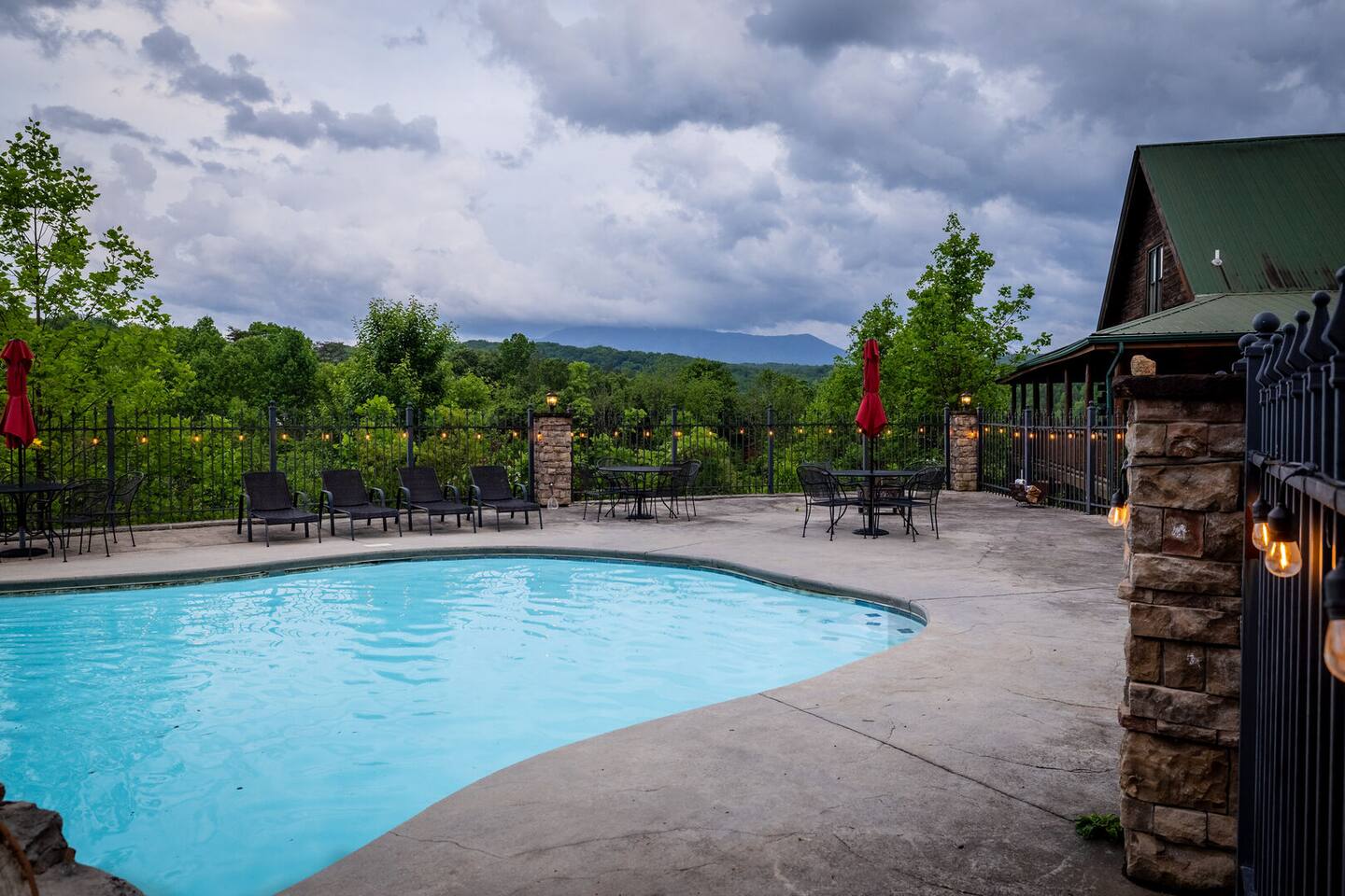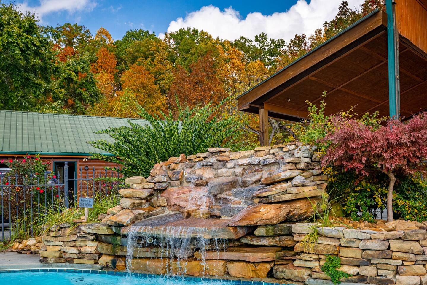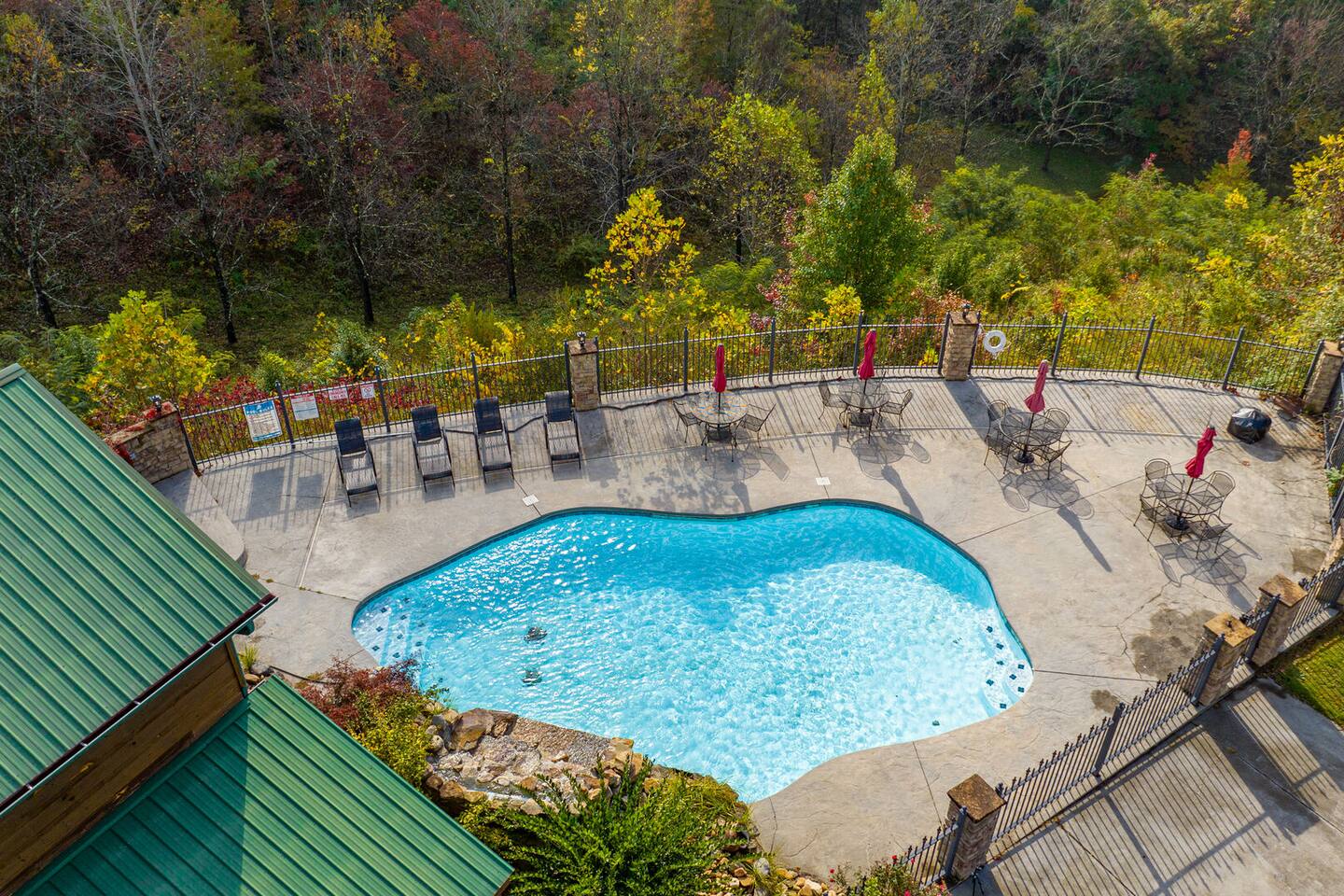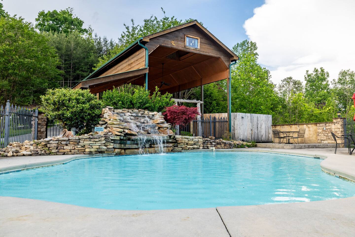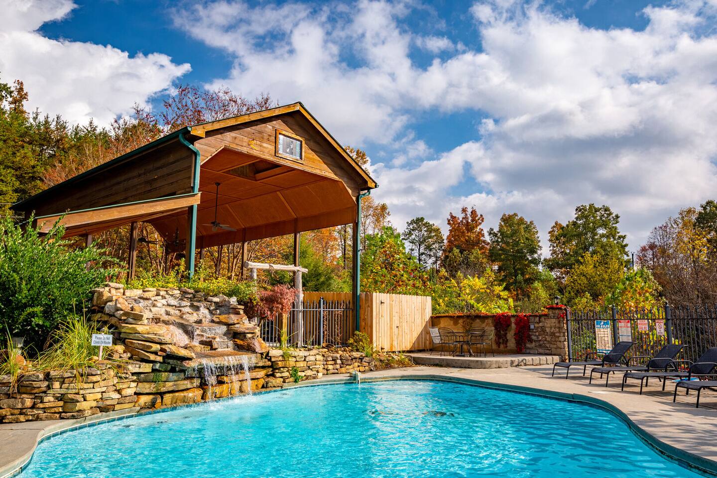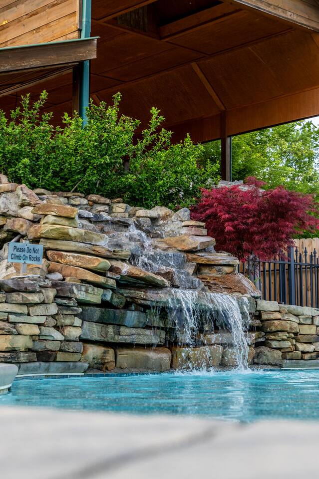 An incredible vacation awaits you and your entire crew, tucked away with world-class views of Mt. LeConte in the Smoky Mountains. Boasting a private waterfall pool, separate hot tub, loaded game room, and sprawling mountain view decks, plus a wrap-around porch. The younger set will love the queen-sized bunk beds (that’s 4 queens total!) and cozy kid’s nook with bean bag chairs and books. Gather everyone to the theater room to pop popcorn and watch movies on the big screen in plush recliners for 8. Get luxurious rest in the master with fireplace and walkout deck in the treetops. ** Big Bear Lodge got a facelift which included adding a new Hot Tub, Laundry Room, new deck & kitchen upgrades! The Big Bear Lodge is also an epic location for reunions and special events. Ask us how! Please note: This property comfortably accommodates 14 guests with traditional beds. Additionally, there are 2 bean bags that convert into full-size beds, bringing the total sleeping capacity to 16. KEY HOME FEATURES ✧ Pool will be closed for the winter from November-March, Hot Tub available year round ✧ NEW Starlink high speed WIFI ✧ Amazing mountain views - stunning Mt. Leconte vista ✧ Private outdoor pool with waterfall feature (non-heated) ✧ Hot Tub open year round ✧ Spacious sleeping accommodations for 14 ✧ Multiple sprawling decks for dining and relaxing with a view ✧ Screened-in deck and a wrap-around porch ✧ Spacious open floor plan with modern kitchen and fireplace ✧ Grandmaster bedroom with fireplace and deck ✧ Gameroom with foosball and the classic Ms. Pac-Man ✧Newly added Laundry Room ✧ AT&T and Verizon cell service and Roku for all TV's (Guest Mode). LOCATION 7 miles to Pigeon Forge 10 miles to Gatlinburg 12 miles to Smoky Mountain National Park BEDROOMS Count on quality linens and bedding provided for restful nights. Comfortably sleeps 14. Bedroom 1: 1 king bed Bedroom 2: 1 queen bed Bedroom 3: 1 full bed Bedroom 4: 2 queen-sized bunk beds - 4 queen beds total Common space: 2 Full size convertible bean bag beds BATHROOMS 3 full bathrooms and 1 half bath ADDITIONAL FEATURES ✧ Washer and dryer ✧ Fully stocked, open-concept kitchen ✧ Central heat and A/C ✧ Ask about our Military Discount ✧ Stairs lead to the entrance ✧ Pet Friendly - Ask us about our pet fees and limits (PET FEES ARE CHARGED SEPARATELY ONCE BOOKING IS CONFIRMED) Ask about our event space for large gatherings, family reunions, weddings, and more. We can combine everything this cabin has to offer with up to 3 other cabins in the area for once-in-a-lifetime experiences. (Events must be pre-approved.) Photo Disclaimer: Depending on your time of stay, the view may be different due to the natural growth of the trees. This is part of the appeal of being so close to the Great Smoky Mountains National Park.
