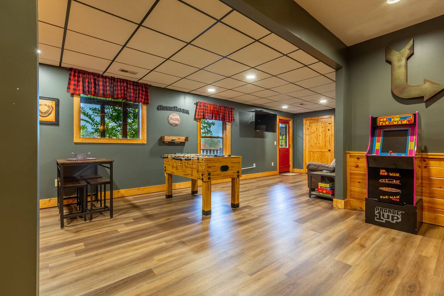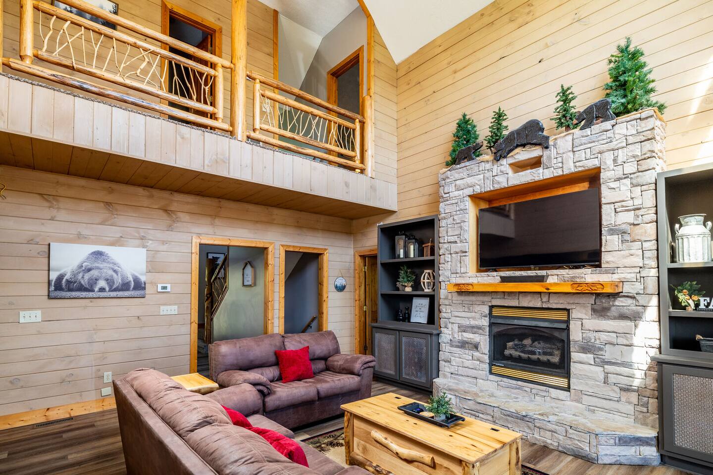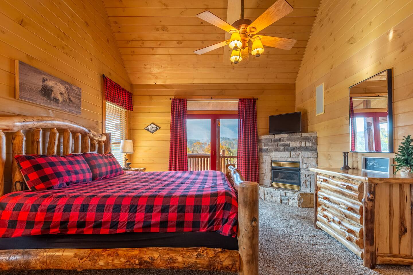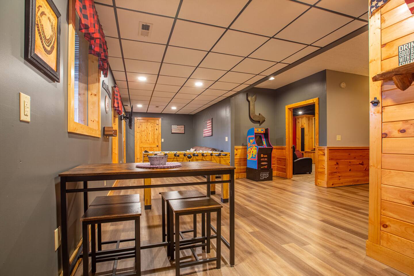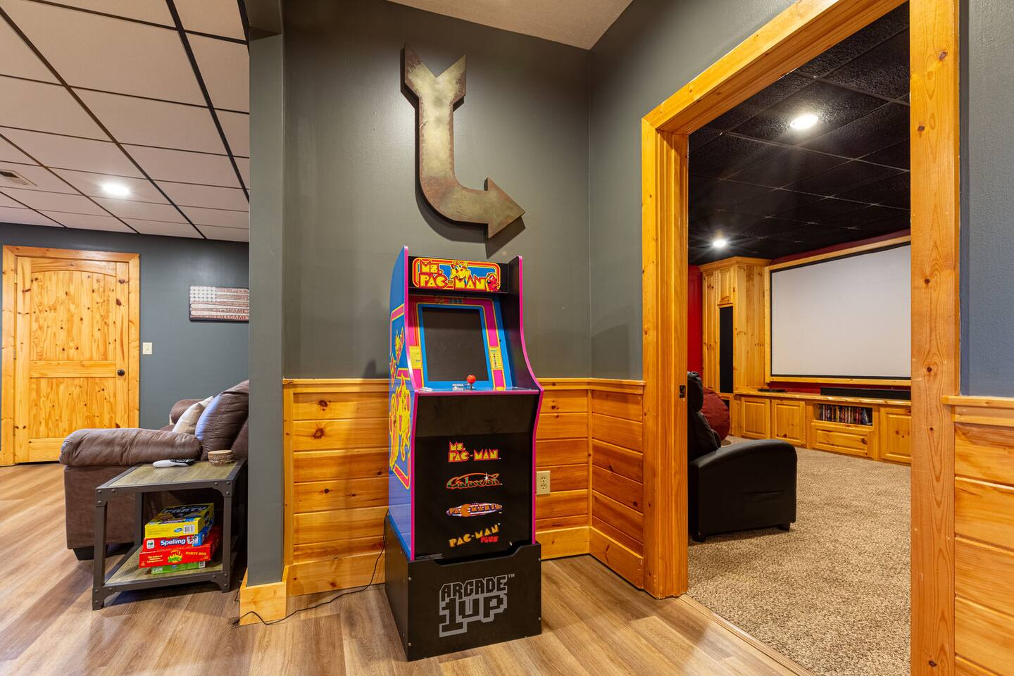 An incredible vacation awaits you and your entire crew, tucked away with world-class views of Mt. LeConte in the Smoky Mountains. Boasting a private waterfall pool, separate hot tub, loaded game room, and sprawling mountain view decks, plus a wrap-around porch. The younger set will love the queen-sized bunk beds (that’s 4 queens total!) and cozy kid’s nook with bean bag chairs and books. Gather everyone to the theater room to pop popcorn and watch movies on the big screen in plush recliners for 8. Get luxurious rest in the master with fireplace and walkout deck in the treetops. ** Big Bear Lodge got a facelift which included adding a new Hot Tub, Laundry Room, new deck & kitchen upgrades! The Big Bear Lodge is also an epic location for reunions and special events. Ask us how! Please note: This property comfortably accommodates 14 guests with traditional beds. Additionally, there are 2 bean bags that convert into full-size beds, bringing the total sleeping capacity to 16. KEY HOME FEATURES ✧ Pool will be closed for the winter from November-March, Hot Tub available year round ✧ NEW Starlink high speed WIFI ✧ Amazing mountain views - stunning Mt. Leconte vista ✧ Private outdoor pool with waterfall feature (non-heated) ✧ Hot Tub open year round ✧ Spacious sleeping accommodations for 14 ✧ Multiple sprawling decks for dining and relaxing with a view ✧ Screened-in deck and a wrap-around porch ✧ Spacious open floor plan with modern kitchen and fireplace ✧ Grandmaster bedroom with fireplace and deck ✧ Gameroom with foosball and the classic Ms. Pac-Man ✧Newly added Laundry Room ✧ AT&T and Verizon cell service and Roku for all TV's (Guest Mode). LOCATION 7 miles to Pigeon Forge 10 miles to Gatlinburg 12 miles to Smoky Mountain National Park BEDROOMS Count on quality linens and bedding provided for restful nights. Comfortably sleeps 14. Bedroom 1: 1 king bed Bedroom 2: 1 queen bed Bedroom 3: 1 full bed Bedroom 4: 2 queen-sized bunk beds - 4 queen beds total Common space: 2 Full size convertible bean bag beds BATHROOMS 3 full bathrooms and 1 half bath ADDITIONAL FEATURES ✧ Washer and dryer ✧ Fully stocked, open-concept kitchen ✧ Central heat and A/C ✧ Ask about our Military Discount ✧ Stairs lead to the entrance ✧ Pet Friendly - Ask us about our pet fees and limits (PET FEES ARE CHARGED SEPARATELY ONCE BOOKING IS CONFIRMED) Ask about our event space for large gatherings, family reunions, weddings, and more. We can combine everything this cabin has to offer with up to 3 other cabins in the area for once-in-a-lifetime experiences. (Events must be pre-approved.) Photo Disclaimer: Depending on your time of stay, the view may be different due to the natural growth of the trees. This is part of the appeal of being so close to the Great Smoky Mountains National Park.