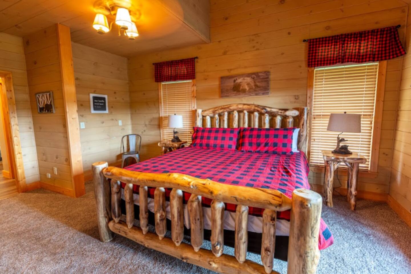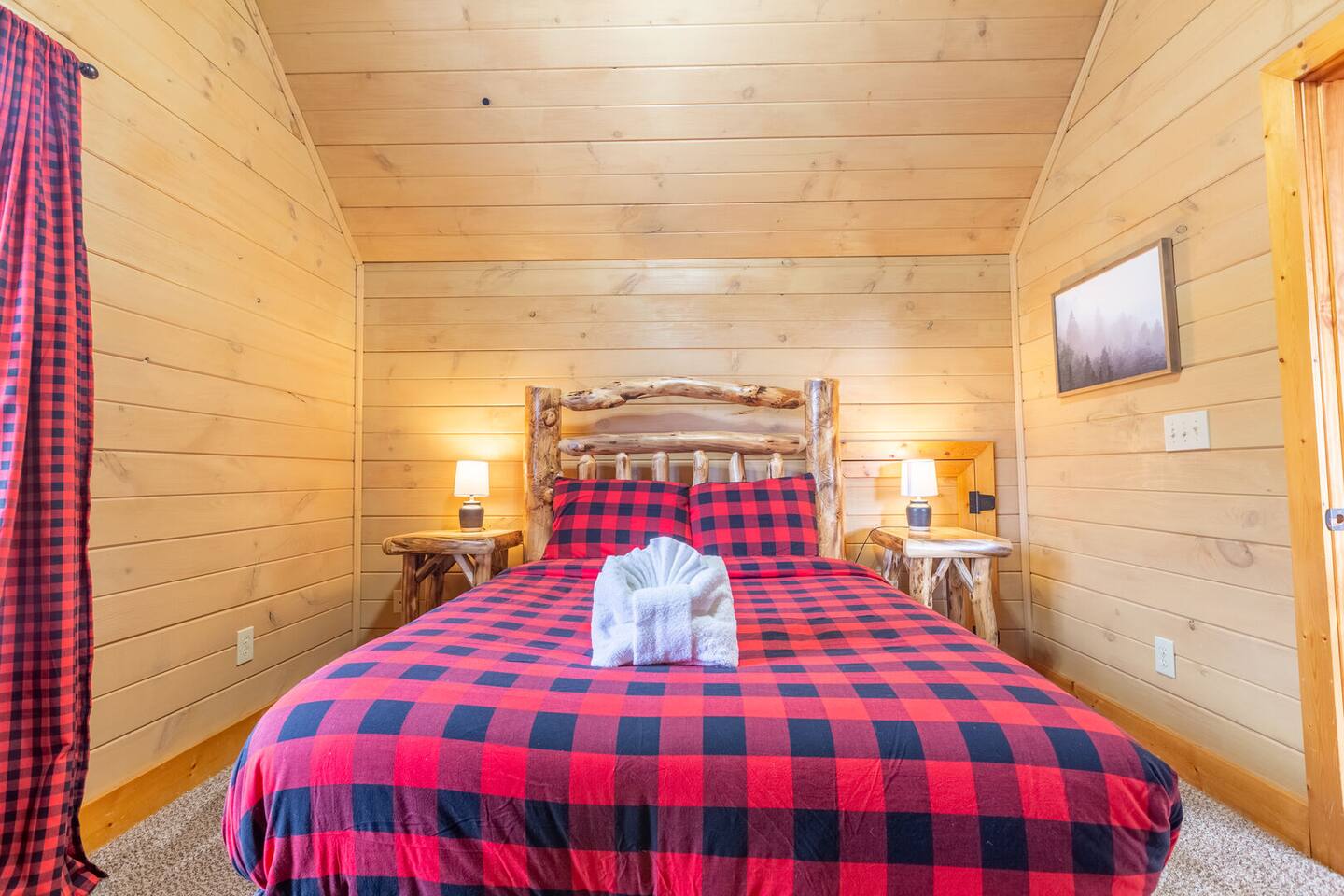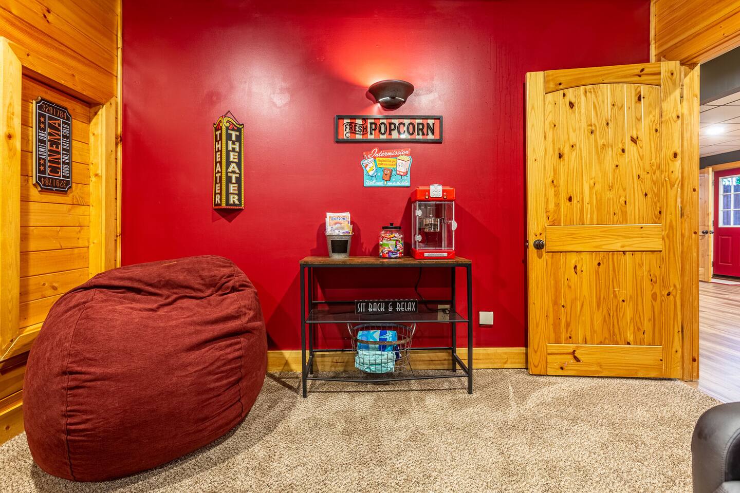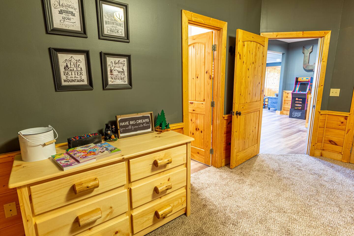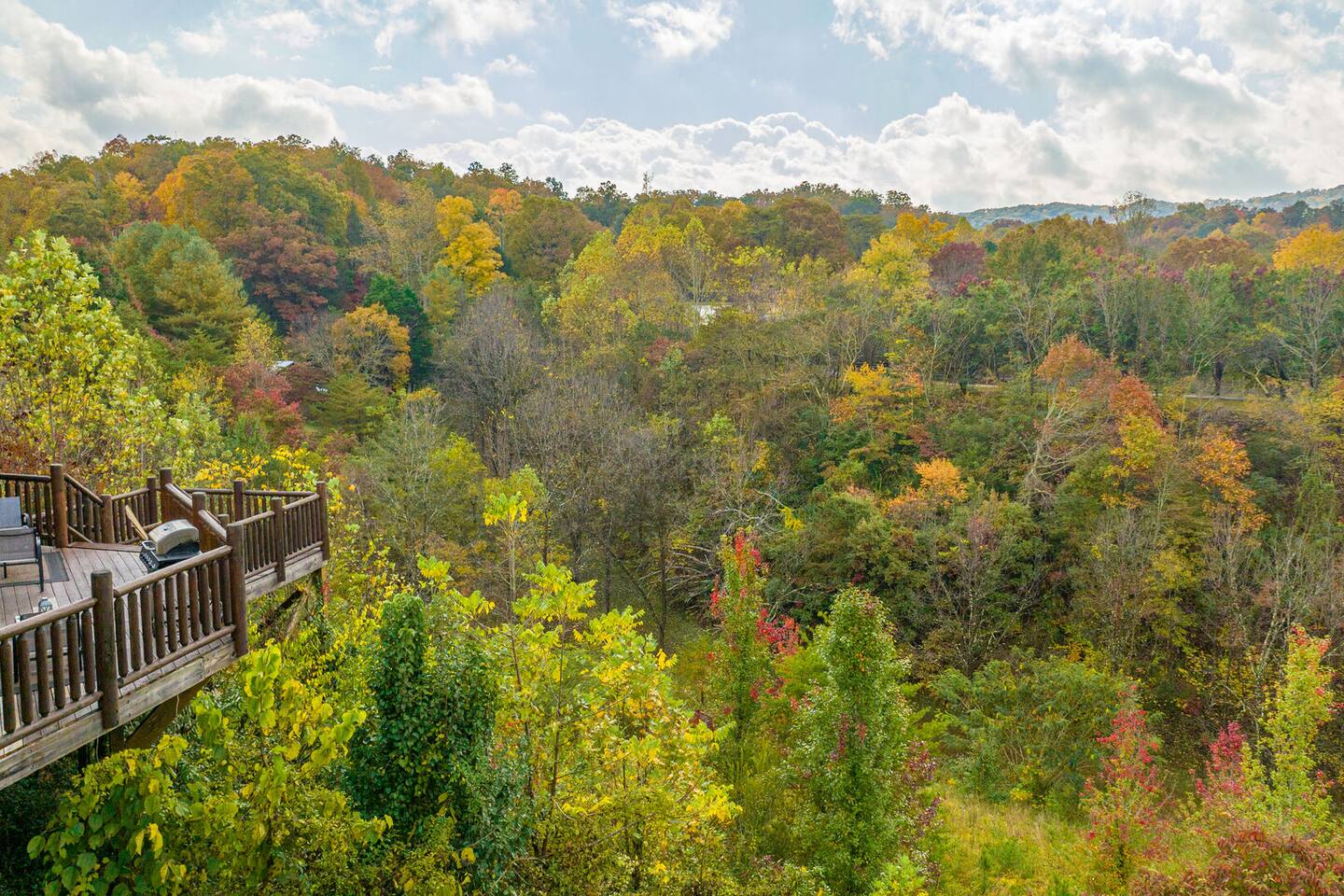 An incredible vacation awaits you and your entire crew, tucked away with world-class views of Mt. LeConte in the Smoky Mountains. Boasting a private waterfall pool, separate hot tub, loaded game room, and sprawling mountain view decks, plus a wrap-around porch. The younger set will love the queen-sized bunk beds (that’s 4 queens total!) and cozy kid’s nook with bean bag chairs and books. Gather everyone to the theater room to pop popcorn and watch movies on the big screen in plush recliners for 8. Get luxurious rest in the master with fireplace and walkout deck in the treetops. ** Big Bear Lodge got a facelift which included adding a new Hot Tub, Laundry Room, new deck & kitchen upgrades! The Big Bear Lodge is also an epic location for reunions and special events. Ask us how! Please note: This property comfortably accommodates 14 guests with traditional beds. Additionally, there are 2 bean bags that convert into full-size beds, bringing the total sleeping capacity to 16. KEY HOME FEATURES ✧ Pool will be closed for the winter from November-March, Hot Tub available year round ✧ NEW Starlink high speed WIFI ✧ Amazing mountain views - stunning Mt. Leconte vista ✧ Private outdoor pool with waterfall feature (non-heated) ✧ Hot Tub open year round ✧ Spacious sleeping accommodations for 14 ✧ Multiple sprawling decks for dining and relaxing with a view ✧ Screened-in deck and a wrap-around porch ✧ Spacious open floor plan with modern kitchen and fireplace ✧ Grandmaster bedroom with fireplace and deck ✧ Gameroom with foosball and the classic Ms. Pac-Man ✧Newly added Laundry Room ✧ AT&T and Verizon cell service and Roku for all TV's (Guest Mode). LOCATION 7 miles to Pigeon Forge 10 miles to Gatlinburg 12 miles to Smoky Mountain National Park BEDROOMS Count on quality linens and bedding provided for restful nights. Comfortably sleeps 14. Bedroom 1: 1 king bed Bedroom 2: 1 queen bed Bedroom 3: 1 full bed Bedroom 4: 2 queen-sized bunk beds - 4 queen beds total Common space: 2 Full size convertible bean bag beds BATHROOMS 3 full bathrooms and 1 half bath ADDITIONAL FEATURES ✧ Washer and dryer ✧ Fully stocked, open-concept kitchen ✧ Central heat and A/C ✧ Ask about our Military Discount ✧ Stairs lead to the entrance ✧ Pet Friendly - Ask us about our pet fees and limits (PET FEES ARE CHARGED SEPARATELY ONCE BOOKING IS CONFIRMED) Ask about our event space for large gatherings, family reunions, weddings, and more. We can combine everything this cabin has to offer with up to 3 other cabins in the area for once-in-a-lifetime experiences. (Events must be pre-approved.) Photo Disclaimer: Depending on your time of stay, the view may be different due to the natural growth of the trees. This is part of the appeal of being so close to the Great Smoky Mountains National Park.