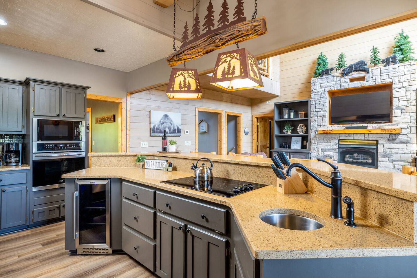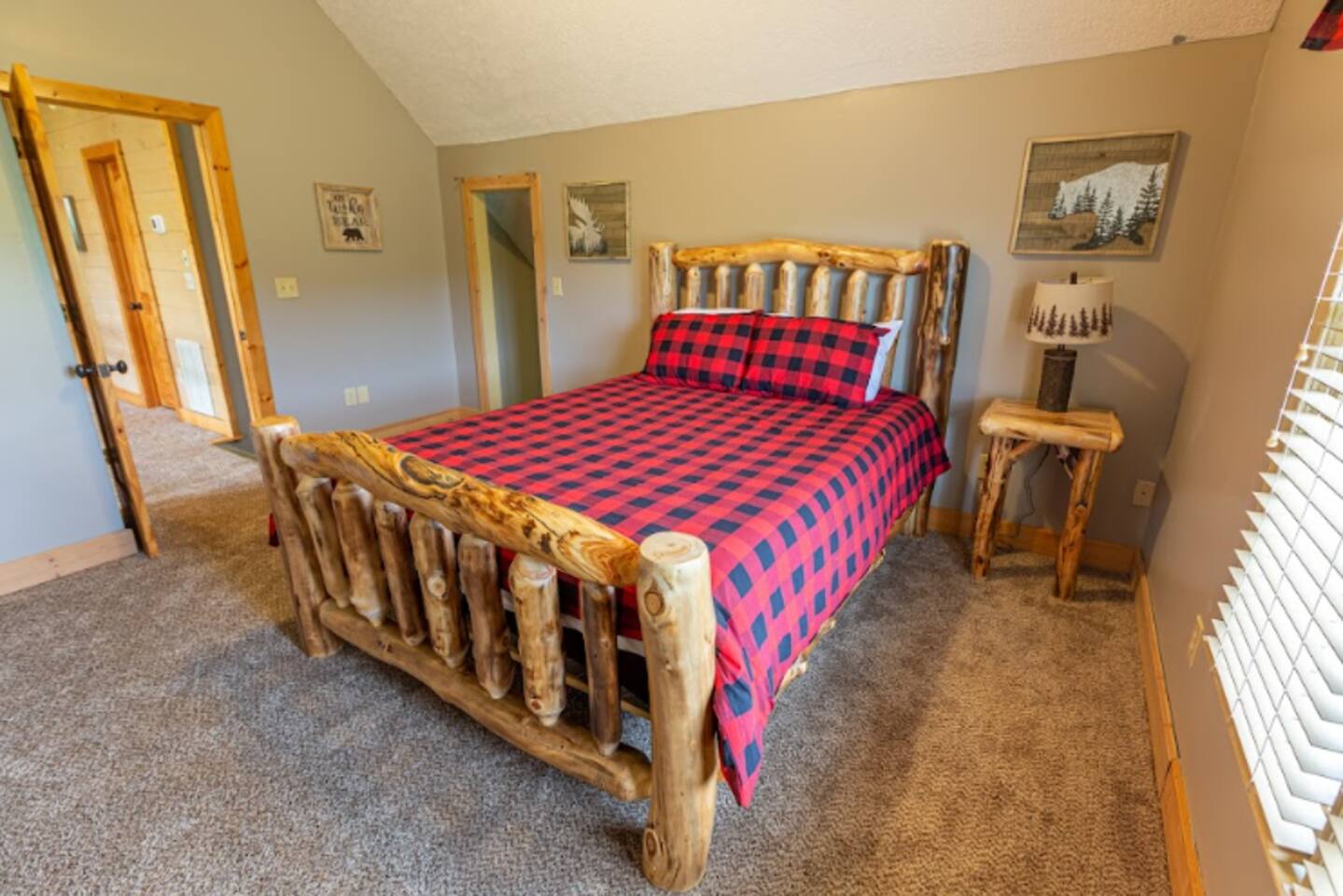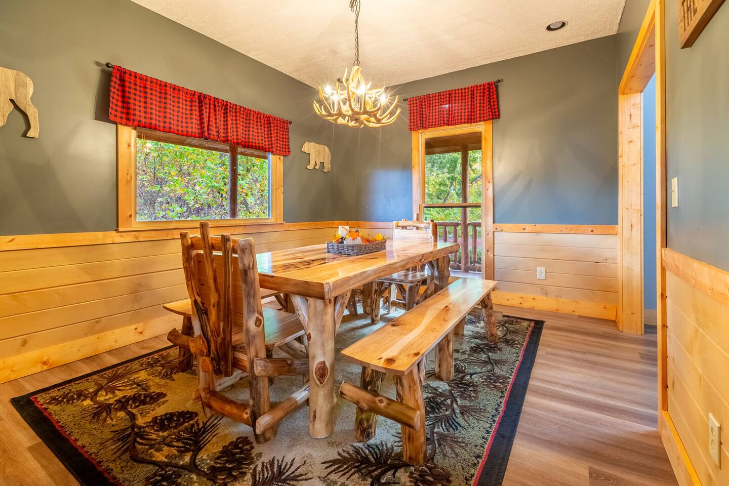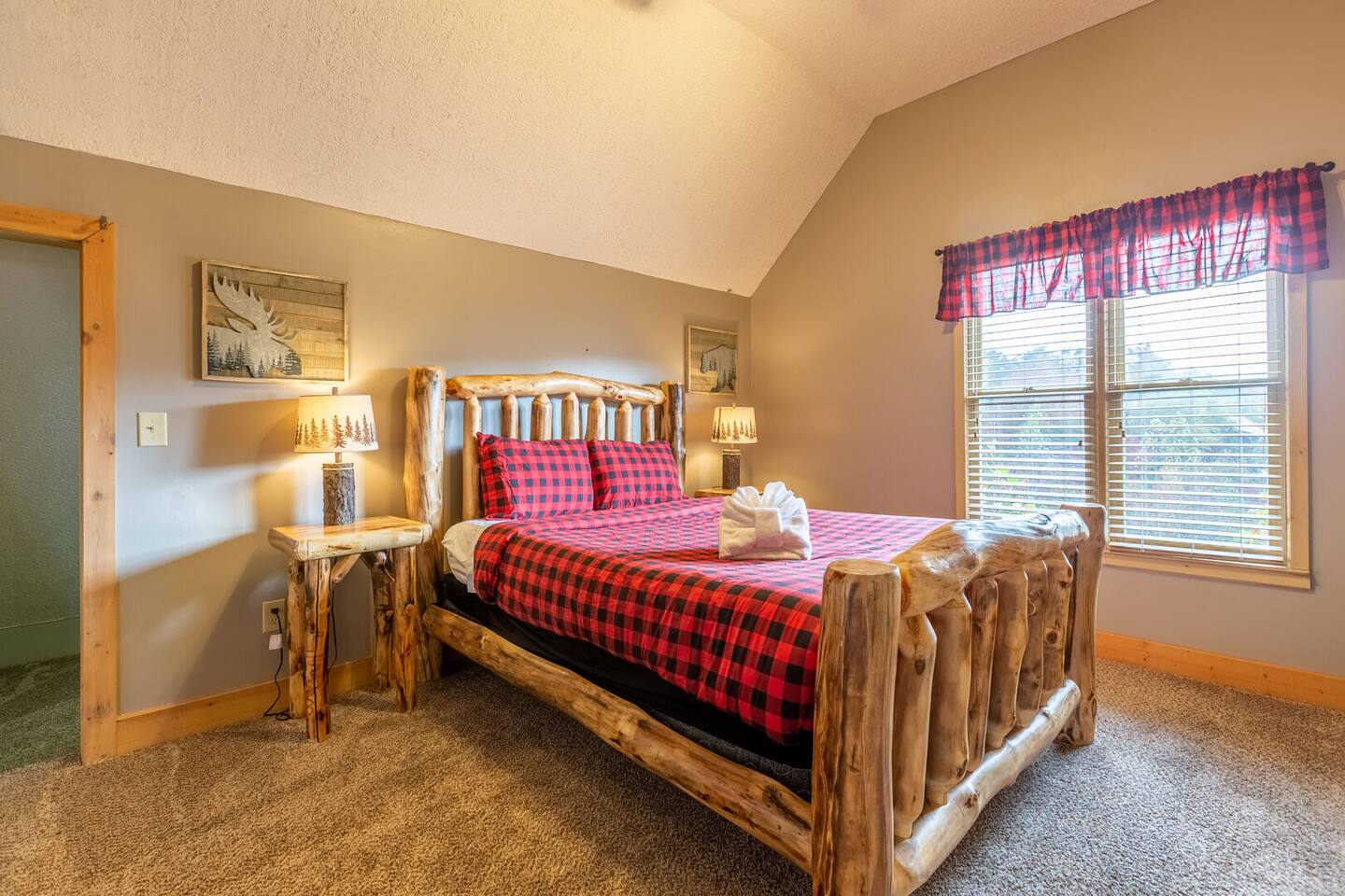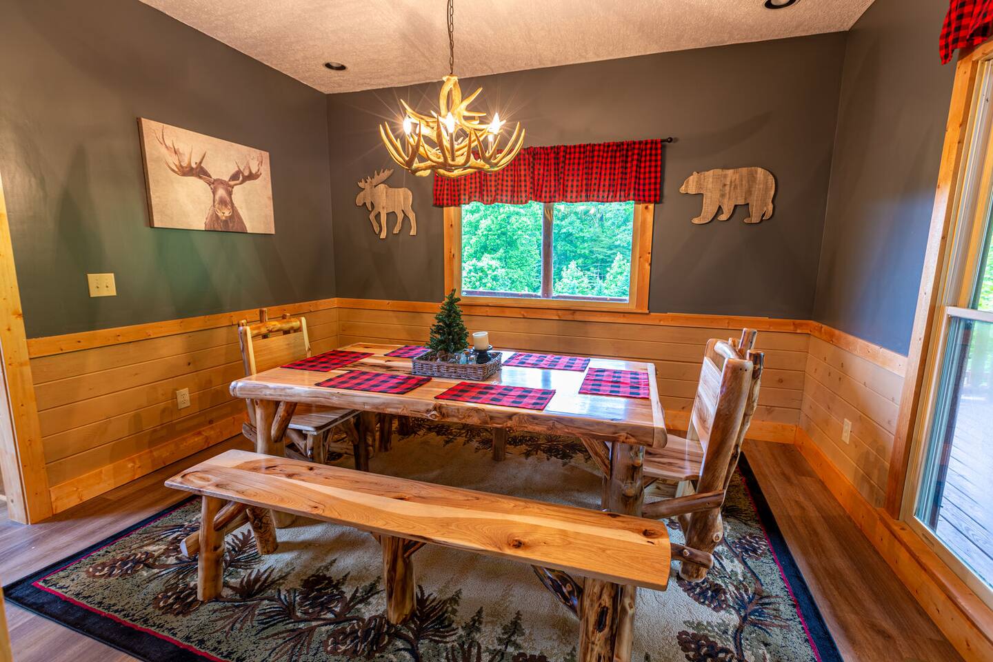 An incredible vacation awaits you and your entire crew, tucked away with world-class views of Mt. LeConte in the Smoky Mountains. Boasting a private waterfall pool, separate hot tub, loaded game room, and sprawling mountain view decks, plus a wrap-around porch. The younger set will love the queen-sized bunk beds (that’s 4 queens total!) and cozy kid’s nook with bean bag chairs and books. Gather everyone to the theater room to pop popcorn and watch movies on the big screen in plush recliners for 8. Get luxurious rest in the master with fireplace and walkout deck in the treetops. ** Big Bear Lodge got a facelift which included adding a new Hot Tub, Laundry Room, new deck & kitchen upgrades! The Big Bear Lodge is also an epic location for reunions and special events. Ask us how! Please note: This property comfortably accommodates 14 guests with traditional beds. Additionally, there are 2 bean bags that convert into full-size beds, bringing the total sleeping capacity to 16. KEY HOME FEATURES ✧ Pool will be closed for the winter from November-March, Hot Tub available year round ✧ NEW Starlink high speed WIFI ✧ Amazing mountain views - stunning Mt. Leconte vista ✧ Private outdoor pool with waterfall feature (non-heated) ✧ Hot Tub open year round ✧ Spacious sleeping accommodations for 14 ✧ Multiple sprawling decks for dining and relaxing with a view ✧ Screened-in deck and a wrap-around porch ✧ Spacious open floor plan with modern kitchen and fireplace ✧ Grandmaster bedroom with fireplace and deck ✧ Gameroom with foosball and the classic Ms. Pac-Man ✧Newly added Laundry Room ✧ AT&T and Verizon cell service and Roku for all TV's (Guest Mode). LOCATION 7 miles to Pigeon Forge 10 miles to Gatlinburg 12 miles to Smoky Mountain National Park BEDROOMS Count on quality linens and bedding provided for restful nights. Comfortably sleeps 14. Bedroom 1: 1 king bed Bedroom 2: 1 queen bed Bedroom 3: 1 full bed Bedroom 4: 2 queen-sized bunk beds - 4 queen beds total Common space: 2 Full size convertible bean bag beds BATHROOMS 3 full bathrooms and 1 half bath ADDITIONAL FEATURES ✧ Washer and dryer ✧ Fully stocked, open-concept kitchen ✧ Central heat and A/C ✧ Ask about our Military Discount ✧ Stairs lead to the entrance ✧ Pet Friendly - Ask us about our pet fees and limits (PET FEES ARE CHARGED SEPARATELY ONCE BOOKING IS CONFIRMED) Ask about our event space for large gatherings, family reunions, weddings, and more. We can combine everything this cabin has to offer with up to 3 other cabins in the area for once-in-a-lifetime experiences. (Events must be pre-approved.) Photo Disclaimer: Depending on your time of stay, the view may be different due to the natural growth of the trees. This is part of the appeal of being so close to the Great Smoky Mountains National Park.