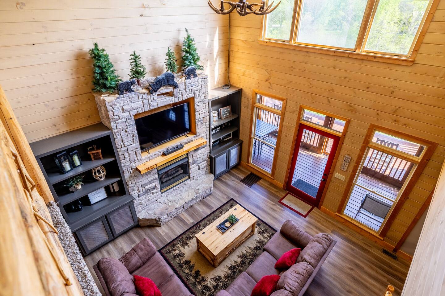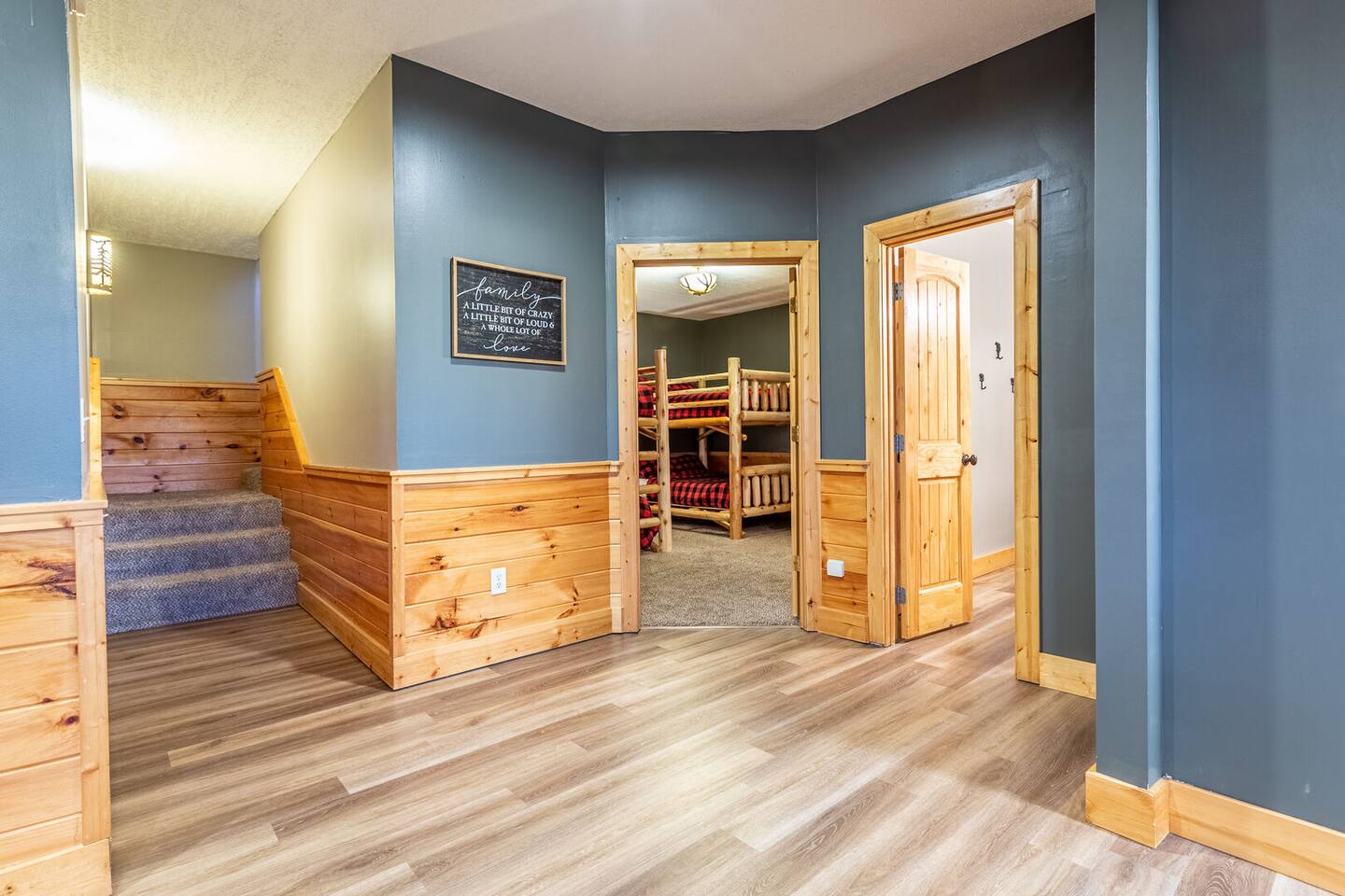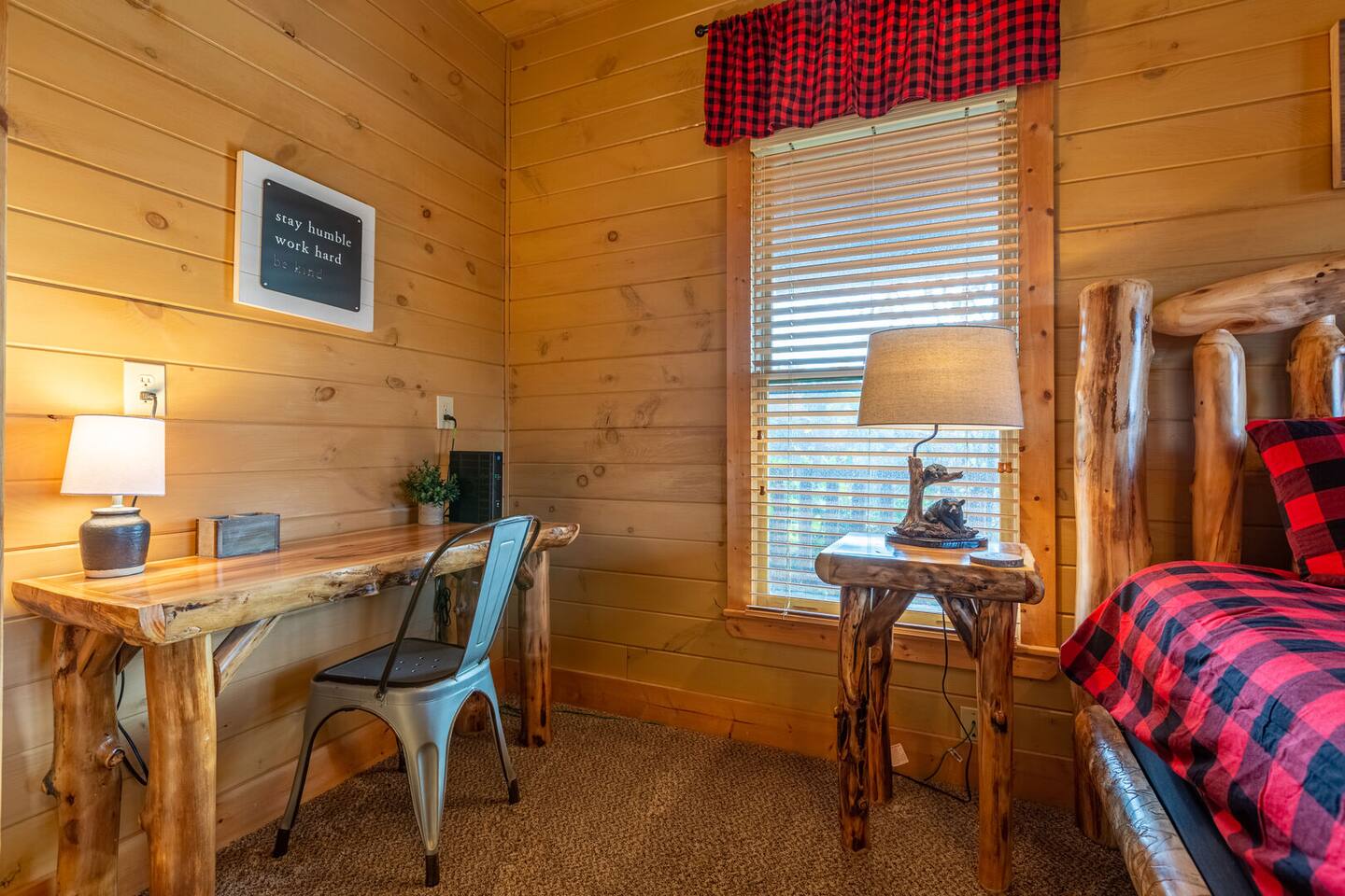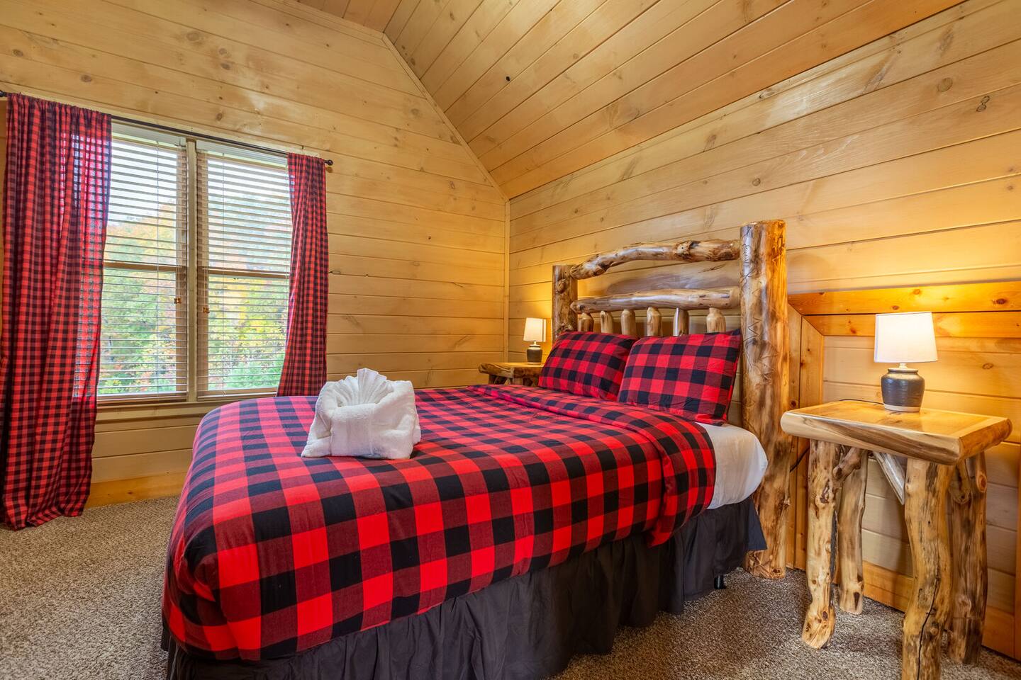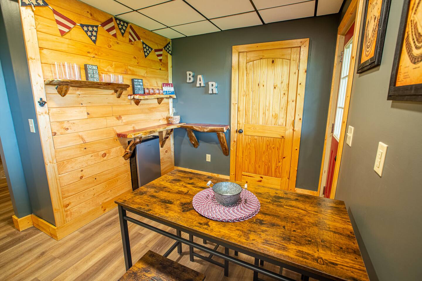 An incredible vacation awaits you and your entire crew, tucked away with world-class views of Mt. LeConte in the Smoky Mountains. Boasting a private waterfall pool, separate hot tub, loaded game room, and sprawling mountain view decks, plus a wrap-around porch. The younger set will love the queen-sized bunk beds (that’s 4 queens total!) and cozy kid’s nook with bean bag chairs and books. Gather everyone to the theater room to pop popcorn and watch movies on the big screen in plush recliners for 8. Get luxurious rest in the master with fireplace and walkout deck in the treetops. ** Big Bear Lodge got a facelift which included adding a new Hot Tub, Laundry Room, new deck & kitchen upgrades! The Big Bear Lodge is also an epic location for reunions and special events. Ask us how! Please note: This property comfortably accommodates 14 guests with traditional beds. Additionally, there are 2 bean bags that convert into full-size beds, bringing the total sleeping capacity to 16. KEY HOME FEATURES ✧ Pool will be closed for the winter from November-March, Hot Tub available year round ✧ NEW Starlink high speed WIFI ✧ Amazing mountain views - stunning Mt. Leconte vista ✧ Private outdoor pool with waterfall feature (non-heated) ✧ Hot Tub open year round ✧ Spacious sleeping accommodations for 14 ✧ Multiple sprawling decks for dining and relaxing with a view ✧ Screened-in deck and a wrap-around porch ✧ Spacious open floor plan with modern kitchen and fireplace ✧ Grandmaster bedroom with fireplace and deck ✧ Gameroom with foosball and the classic Ms. Pac-Man ✧Newly added Laundry Room ✧ AT&T and Verizon cell service and Roku for all TV's (Guest Mode). LOCATION 7 miles to Pigeon Forge 10 miles to Gatlinburg 12 miles to Smoky Mountain National Park BEDROOMS Count on quality linens and bedding provided for restful nights. Comfortably sleeps 14. Bedroom 1: 1 king bed Bedroom 2: 1 queen bed Bedroom 3: 1 full bed Bedroom 4: 2 queen-sized bunk beds - 4 queen beds total Common space: 2 Full size convertible bean bag beds BATHROOMS 3 full bathrooms and 1 half bath ADDITIONAL FEATURES ✧ Washer and dryer ✧ Fully stocked, open-concept kitchen ✧ Central heat and A/C ✧ Ask about our Military Discount ✧ Stairs lead to the entrance ✧ Pet Friendly - Ask us about our pet fees and limits (PET FEES ARE CHARGED SEPARATELY ONCE BOOKING IS CONFIRMED) Ask about our event space for large gatherings, family reunions, weddings, and more. We can combine everything this cabin has to offer with up to 3 other cabins in the area for once-in-a-lifetime experiences. (Events must be pre-approved.) Photo Disclaimer: Depending on your time of stay, the view may be different due to the natural growth of the trees. This is part of the appeal of being so close to the Great Smoky Mountains National Park.
