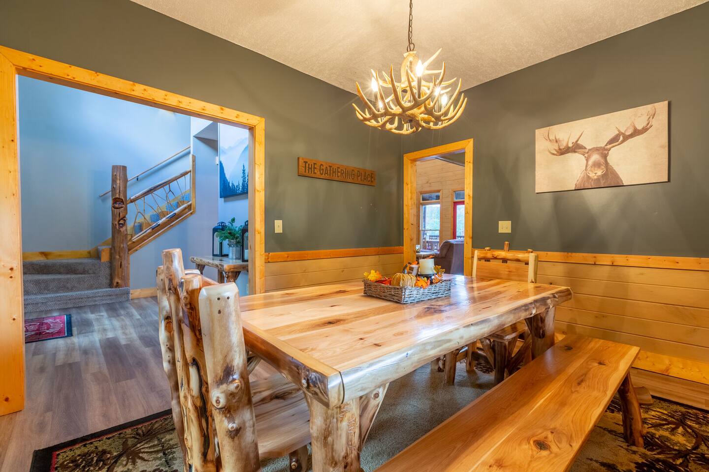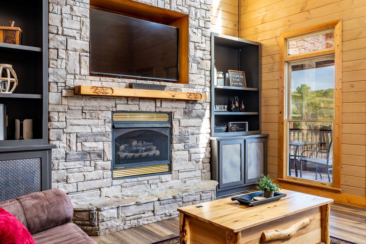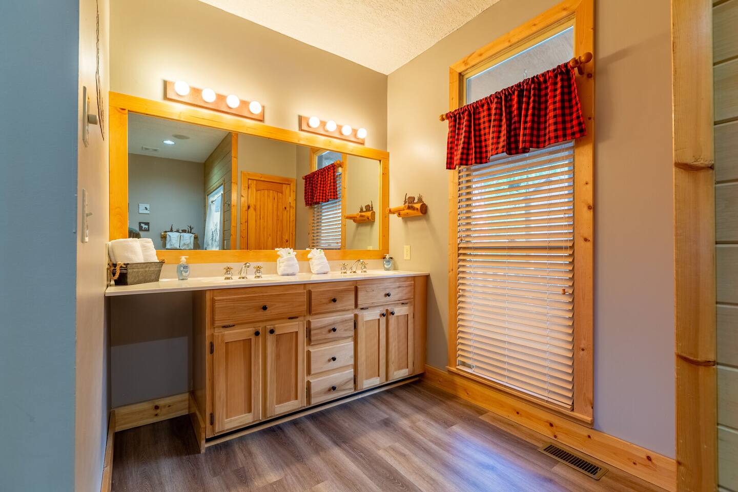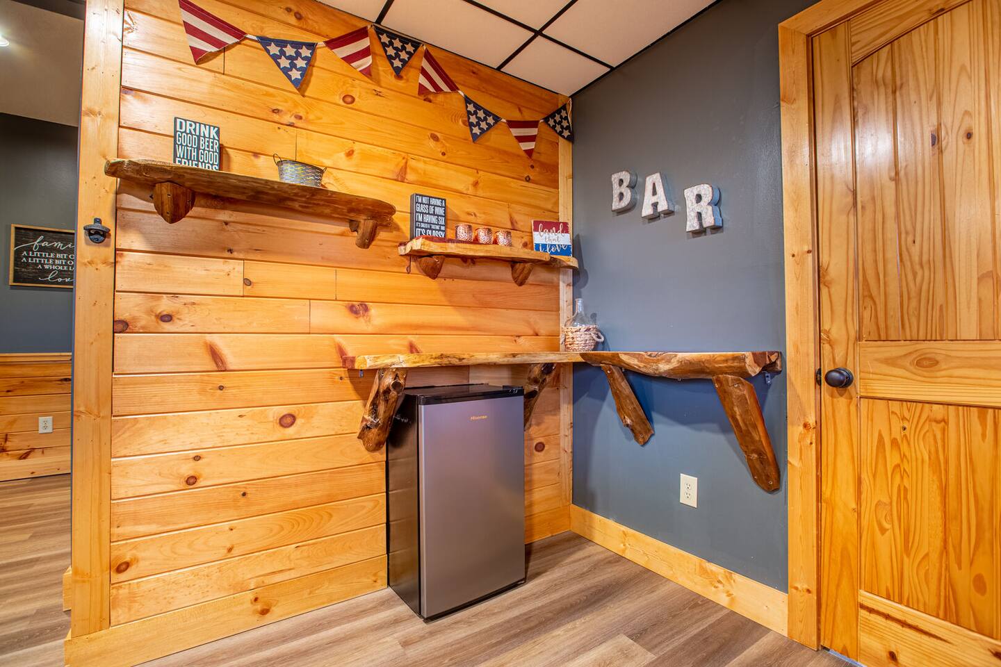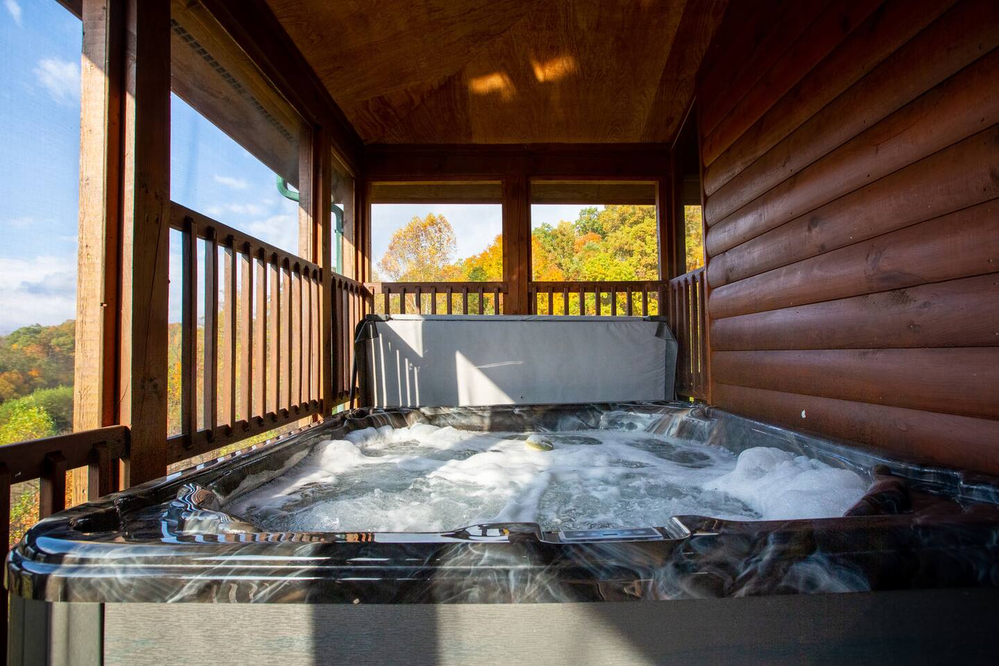 An incredible vacation awaits you and your entire crew, tucked away with world-class views of Mt. LeConte in the Smoky Mountains. Boasting a private waterfall pool, separate hot tub, loaded game room, and sprawling mountain view decks, plus a wrap-around porch. The younger set will love the queen-sized bunk beds (that’s 4 queens total!) and cozy kid’s nook with bean bag chairs and books. Gather everyone to the theater room to pop popcorn and watch movies on the big screen in plush recliners for 8. Get luxurious rest in the master with fireplace and walkout deck in the treetops. ** Big Bear Lodge got a facelift which included adding a new Hot Tub, Laundry Room, new deck & kitchen upgrades! The Big Bear Lodge is also an epic location for reunions and special events. Ask us how! Please note: This property comfortably accommodates 14 guests with traditional beds. Additionally, there are 2 bean bags that convert into full-size beds, bringing the total sleeping capacity to 16. KEY HOME FEATURES ✧ Pool will be closed for the winter from November-March, Hot Tub available year round ✧ NEW Starlink high speed WIFI ✧ Amazing mountain views - stunning Mt. Leconte vista ✧ Private outdoor pool with waterfall feature (non-heated) ✧ Hot Tub open year round ✧ Spacious sleeping accommodations for 14 ✧ Multiple sprawling decks for dining and relaxing with a view ✧ Screened-in deck and a wrap-around porch ✧ Spacious open floor plan with modern kitchen and fireplace ✧ Grandmaster bedroom with fireplace and deck ✧ Gameroom with foosball and the classic Ms. Pac-Man ✧Newly added Laundry Room ✧ AT&T and Verizon cell service and Roku for all TV's (Guest Mode). LOCATION 7 miles to Pigeon Forge 10 miles to Gatlinburg 12 miles to Smoky Mountain National Park BEDROOMS Count on quality linens and bedding provided for restful nights. Comfortably sleeps 14. Bedroom 1: 1 king bed Bedroom 2: 1 queen bed Bedroom 3: 1 full bed Bedroom 4: 2 queen-sized bunk beds - 4 queen beds total Common space: 2 Full size convertible bean bag beds BATHROOMS 3 full bathrooms and 1 half bath ADDITIONAL FEATURES ✧ Washer and dryer ✧ Fully stocked, open-concept kitchen ✧ Central heat and A/C ✧ Ask about our Military Discount ✧ Stairs lead to the entrance ✧ Pet Friendly - Ask us about our pet fees and limits (PET FEES ARE CHARGED SEPARATELY ONCE BOOKING IS CONFIRMED) Ask about our event space for large gatherings, family reunions, weddings, and more. We can combine everything this cabin has to offer with up to 3 other cabins in the area for once-in-a-lifetime experiences. (Events must be pre-approved.) Photo Disclaimer: Depending on your time of stay, the view may be different due to the natural growth of the trees. This is part of the appeal of being so close to the Great Smoky Mountains National Park.