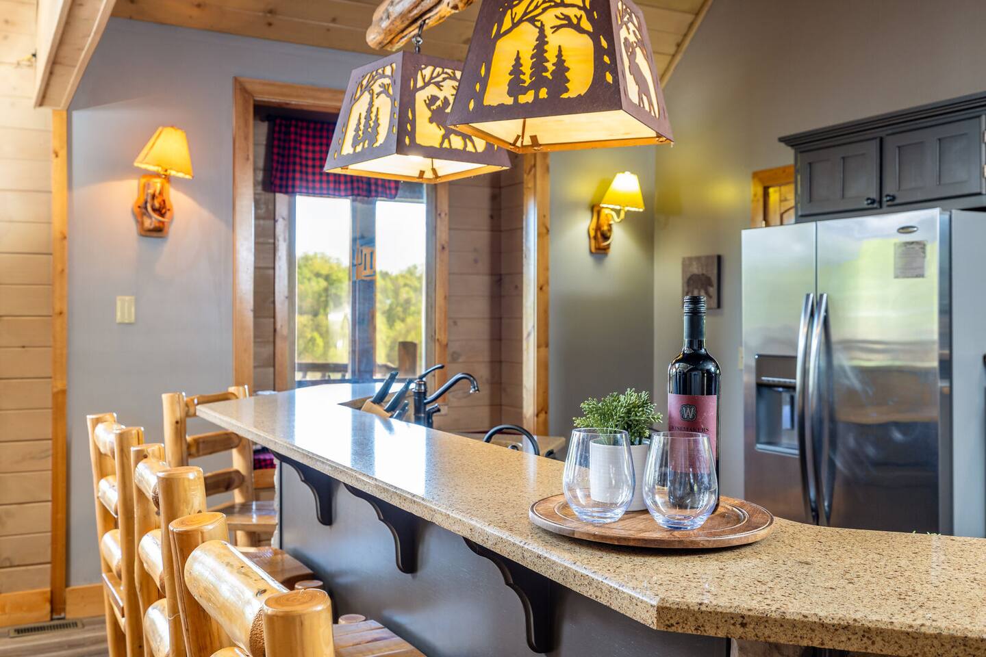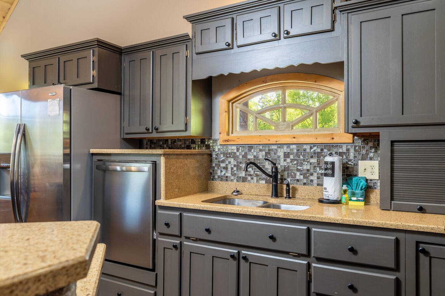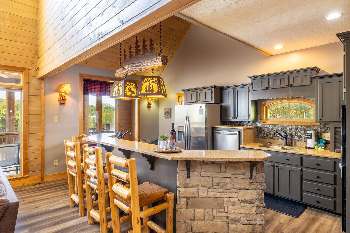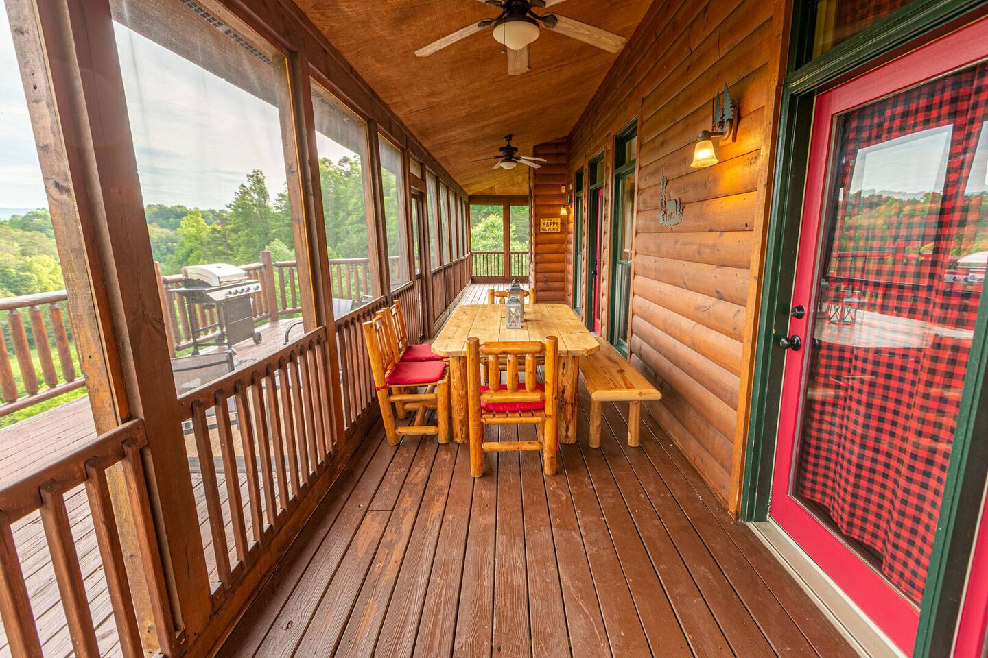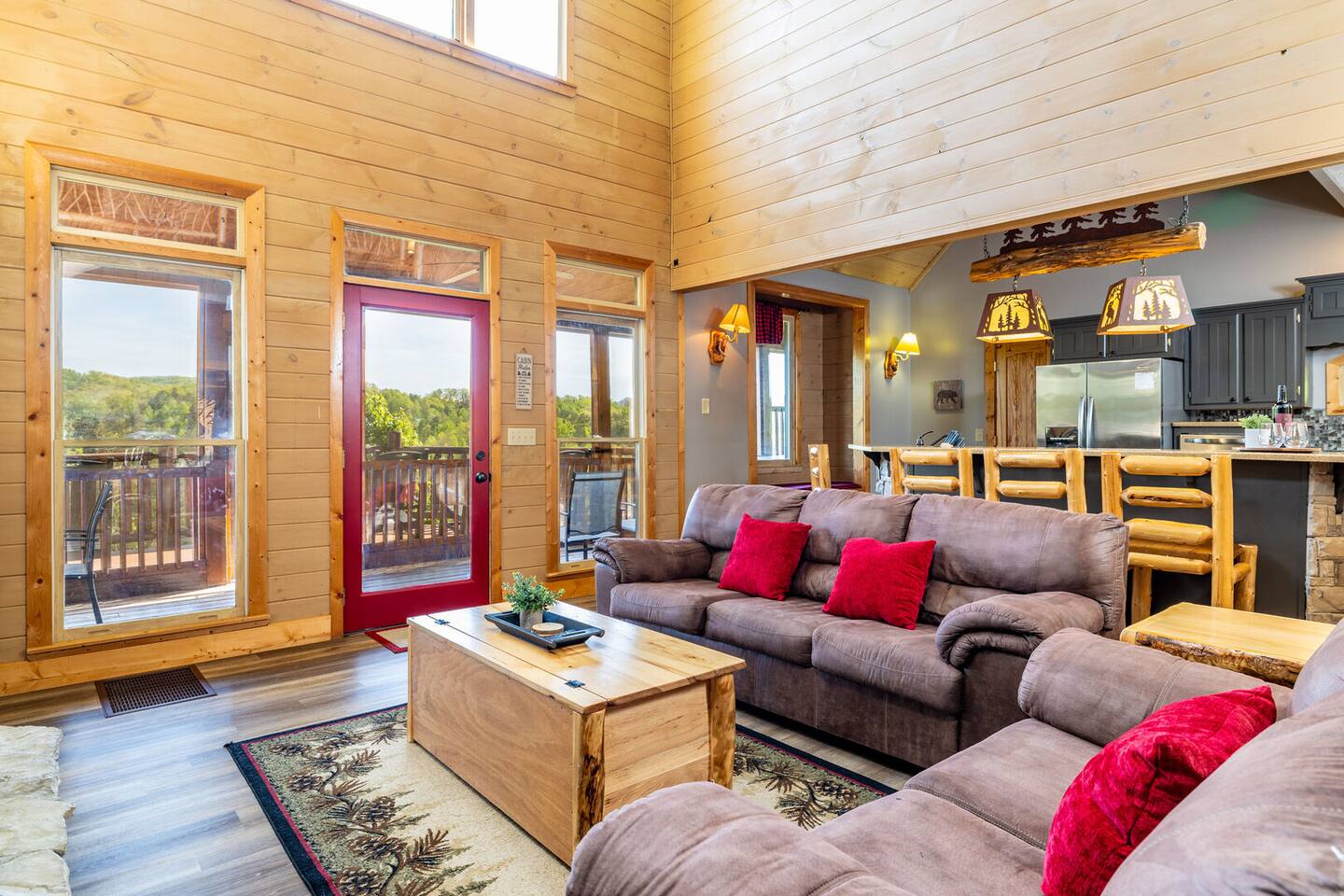 An incredible vacation awaits you and your entire crew, tucked away with world-class views of Mt. LeConte in the Smoky Mountains. Boasting a private waterfall pool, separate hot tub, loaded game room, and sprawling mountain view decks, plus a wrap-around porch. The younger set will love the queen-sized bunk beds (that’s 4 queens total!) and cozy kid’s nook with bean bag chairs and books. Gather everyone to the theater room to pop popcorn and watch movies on the big screen in plush recliners for 8. Get luxurious rest in the master with fireplace and walkout deck in the treetops. ** Big Bear Lodge got a facelift which included adding a new Hot Tub, Laundry Room, new deck & kitchen upgrades! The Big Bear Lodge is also an epic location for reunions and special events. Ask us how! Please note: This property comfortably accommodates 14 guests with traditional beds. Additionally, there are 2 bean bags that convert into full-size beds, bringing the total sleeping capacity to 16. KEY HOME FEATURES ✧ Pool will be closed for the winter from November-March, Hot Tub available year round ✧ NEW Starlink high speed WIFI ✧ Amazing mountain views - stunning Mt. Leconte vista ✧ Private outdoor pool with waterfall feature (non-heated) ✧ Hot Tub open year round ✧ Spacious sleeping accommodations for 14 ✧ Multiple sprawling decks for dining and relaxing with a view ✧ Screened-in deck and a wrap-around porch ✧ Spacious open floor plan with modern kitchen and fireplace ✧ Grandmaster bedroom with fireplace and deck ✧ Gameroom with foosball and the classic Ms. Pac-Man ✧Newly added Laundry Room ✧ AT&T and Verizon cell service and Roku for all TV's (Guest Mode). LOCATION 7 miles to Pigeon Forge 10 miles to Gatlinburg 12 miles to Smoky Mountain National Park BEDROOMS Count on quality linens and bedding provided for restful nights. Comfortably sleeps 14. Bedroom 1: 1 king bed Bedroom 2: 1 queen bed Bedroom 3: 1 full bed Bedroom 4: 2 queen-sized bunk beds - 4 queen beds total Common space: 2 Full size convertible bean bag beds BATHROOMS 3 full bathrooms and 1 half bath ADDITIONAL FEATURES ✧ Washer and dryer ✧ Fully stocked, open-concept kitchen ✧ Central heat and A/C ✧ Ask about our Military Discount ✧ Stairs lead to the entrance ✧ Pet Friendly - Ask us about our pet fees and limits (PET FEES ARE CHARGED SEPARATELY ONCE BOOKING IS CONFIRMED) Ask about our event space for large gatherings, family reunions, weddings, and more. We can combine everything this cabin has to offer with up to 3 other cabins in the area for once-in-a-lifetime experiences. (Events must be pre-approved.) Photo Disclaimer: Depending on your time of stay, the view may be different due to the natural growth of the trees. This is part of the appeal of being so close to the Great Smoky Mountains National Park.