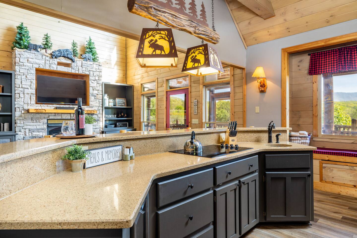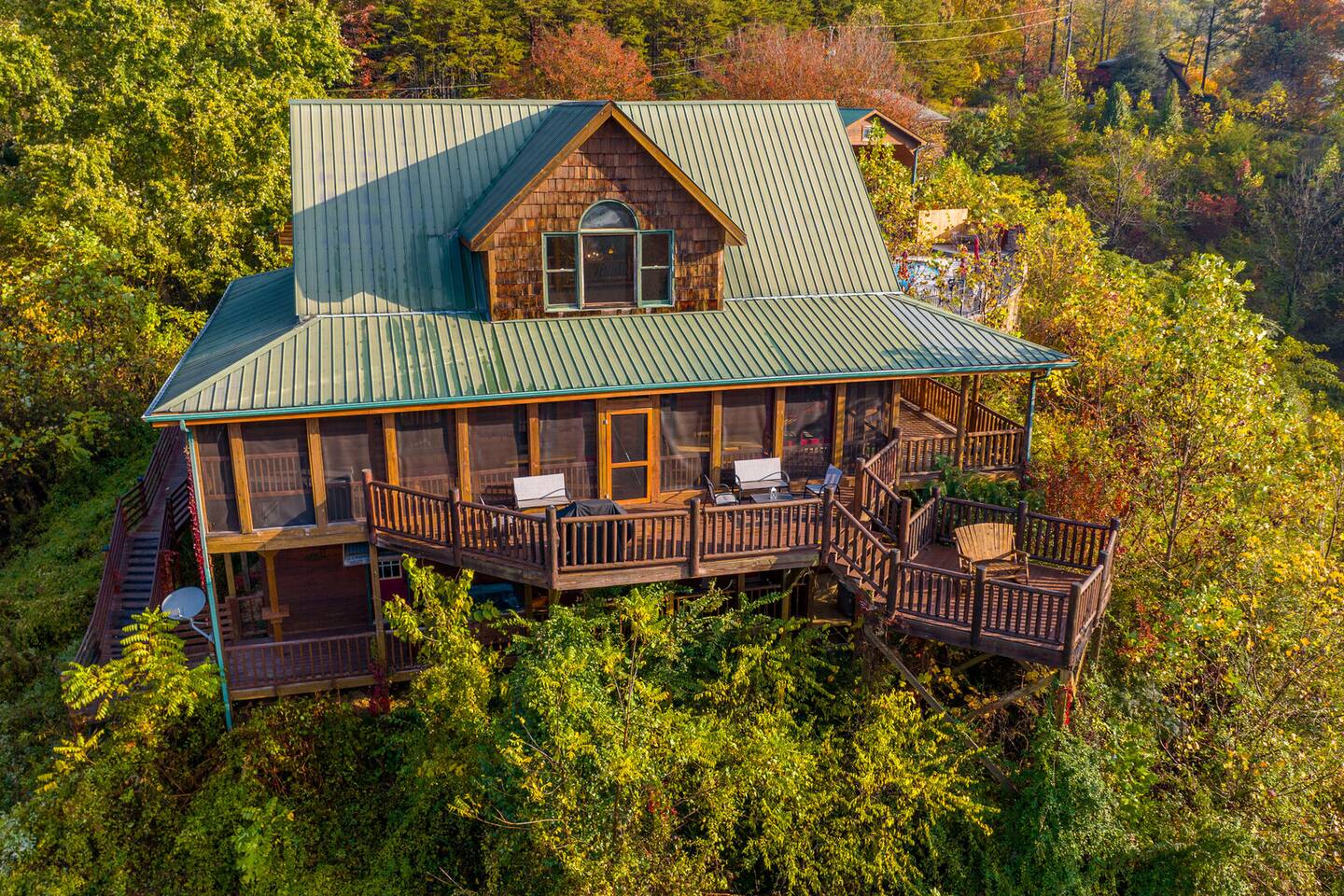 An incredible vacation awaits you and your entire crew, tucked away with world-class views of Mt. LeConte in the Smoky Mountains. Boasting a private waterfall pool, hot tub, loaded game room, theater and sprawling mountain view decks, plus a wrap-around porch.